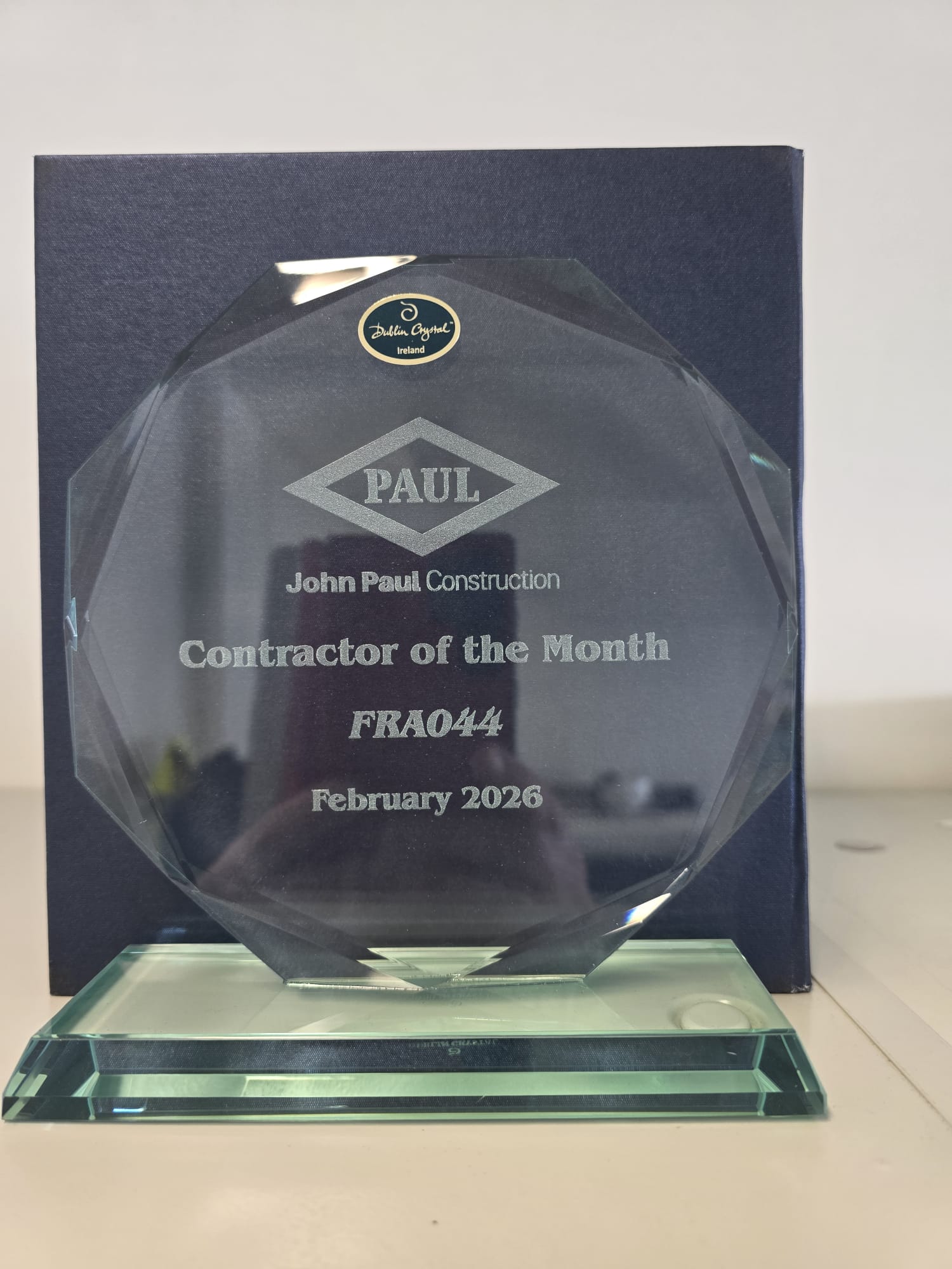 We are delighted to have been awarded the Contractor of the Year Award by John Paul Construction for our work on a confidential site in Germany. This recognition is something we are extremely proud of and reflects the dedication, professionalism, and consistent effort of our team throughout the project.